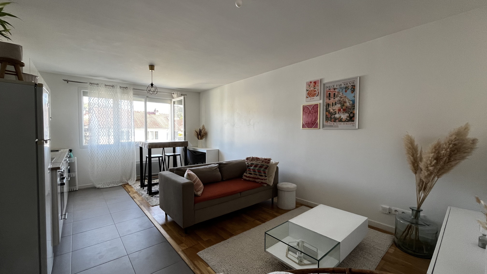 Vous profiterez d'un séjour avec sa cuisine ouverte, d’une chambre avec placards intégrés, d’une grande salle de bain avec WC, ainsi que d’une place de parking extérieure privative.