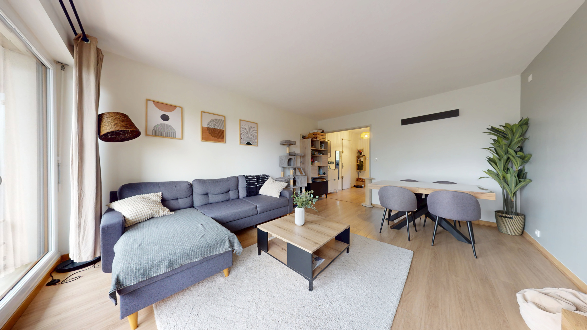 d'un séjour spacieux et lumineux ouvrant sur un balcon avec vue dégagée sur la Seine,