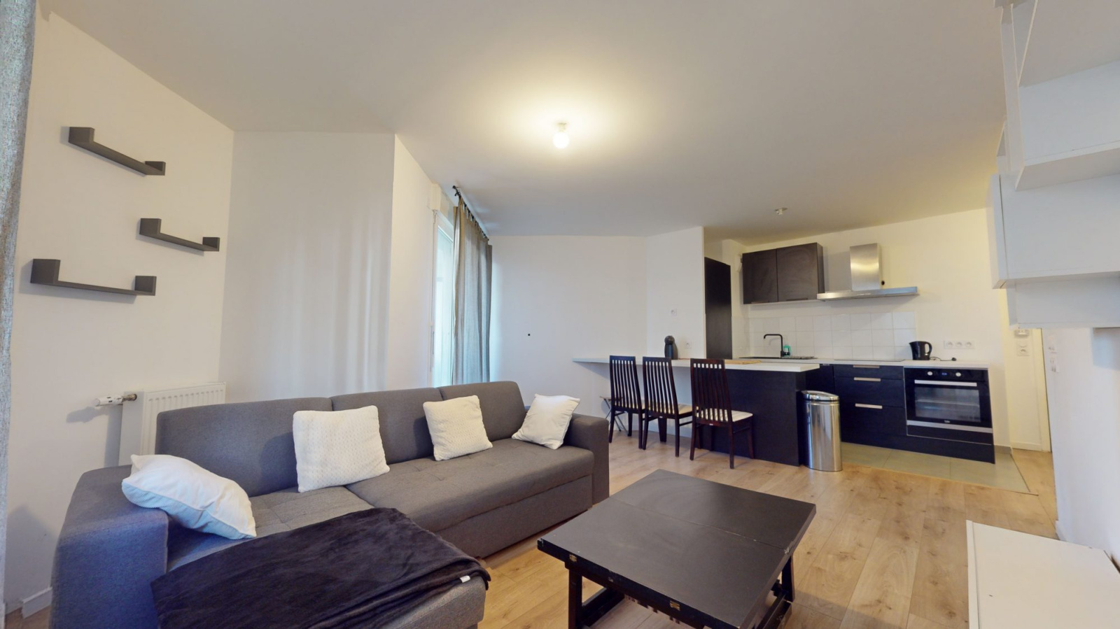 Il se compose de manière suivante : une entrée avec placard donnant sur séjour, une cuisine ouverte entièrement aménagée et équipée, un balcon, 2 chambres dont une avec placard, une salle de bains et un WC indépendant. 2 places de parking en sous-sol complètent ce bien.