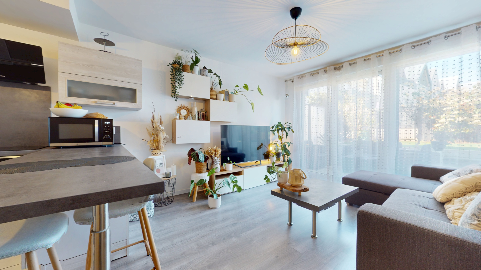 - Un séjour/cuisine ouvert de 21 m², baigné de lumière, donnant directement sur la terrasse et le jardin privatif de 22 m² — un espace extérieur rare et précieux, idéal pour profiter des beaux jours en toute intimité.