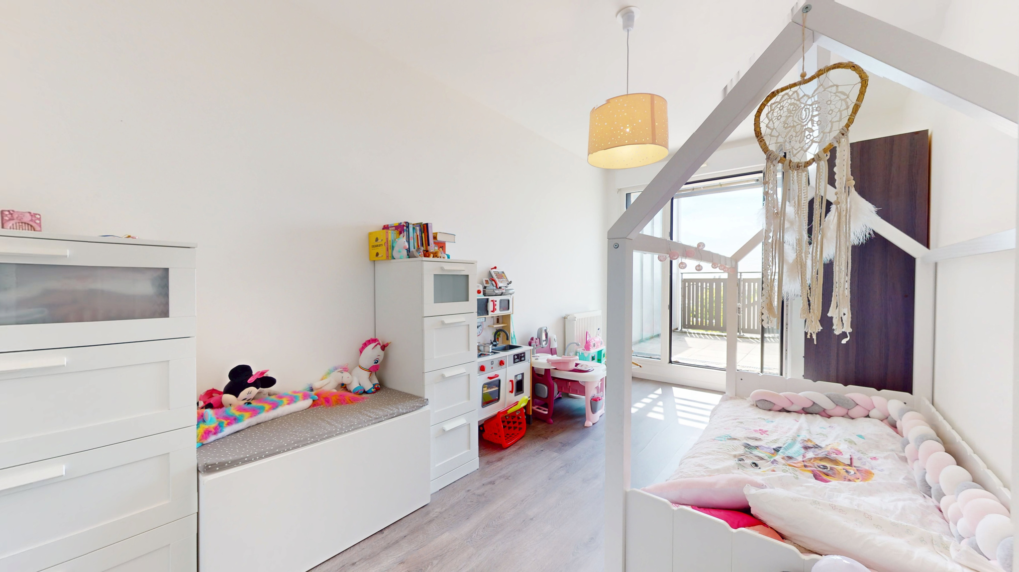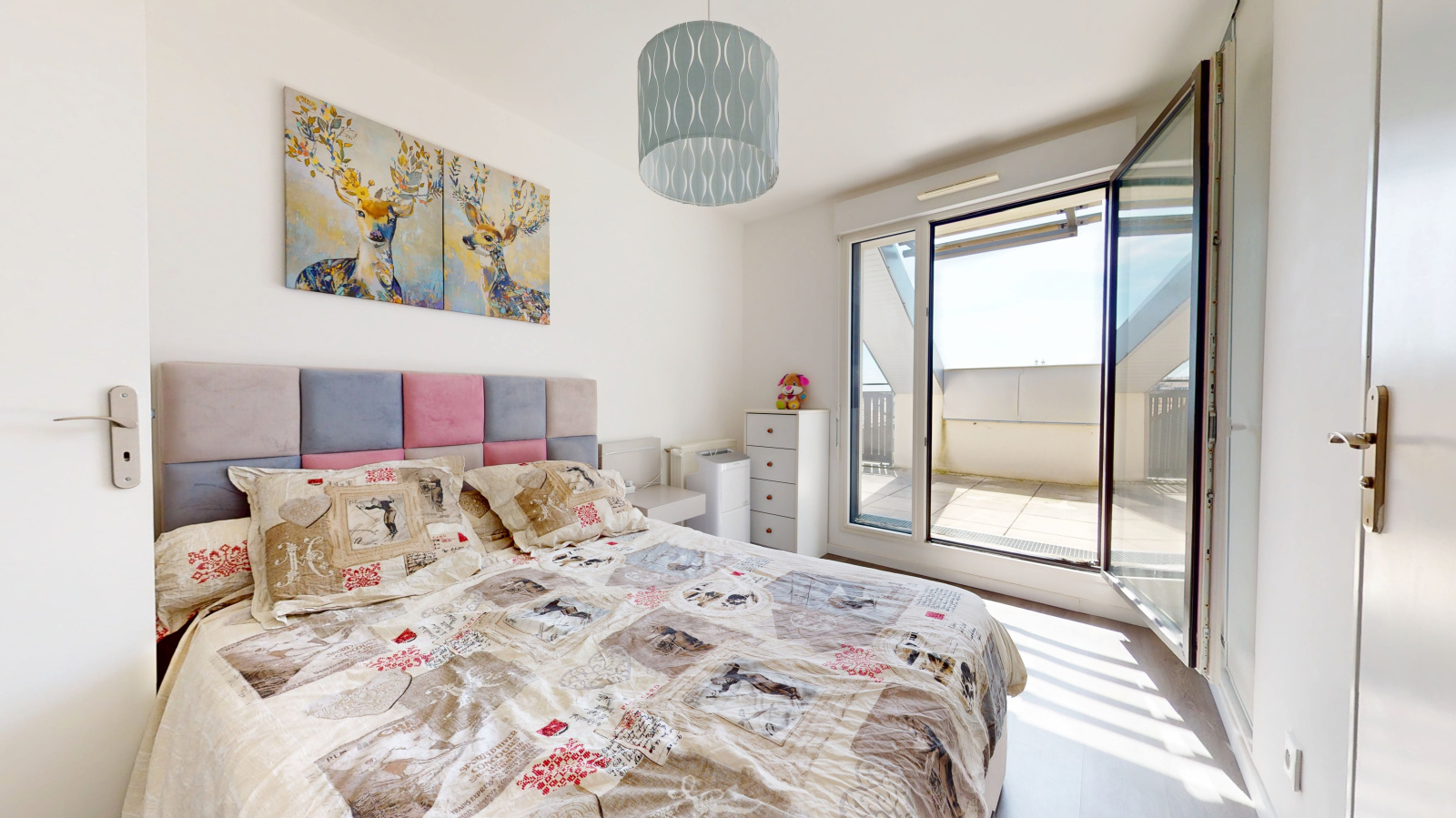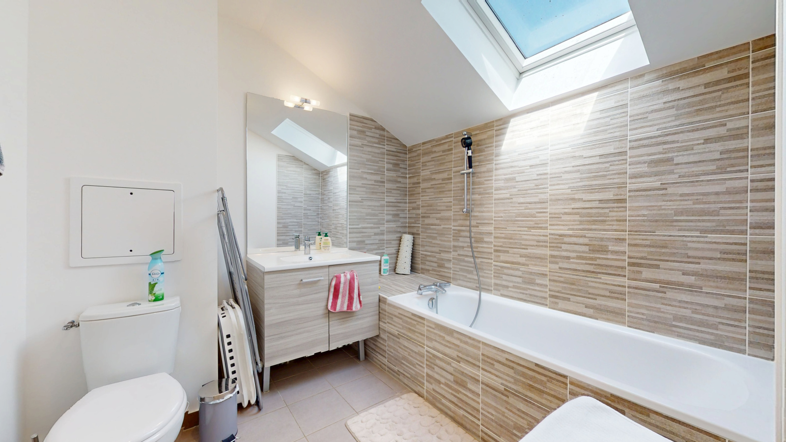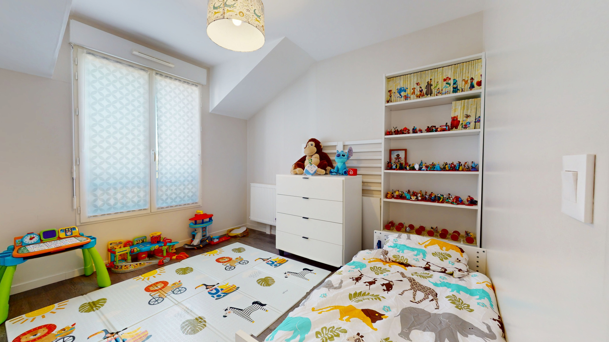 À l'étage, l'espace nuit se compose de trois chambres toutes supérieures à 10 m², dont une bénéficie de sa propre salle d'eau privative — un vrai confort au quotidien pour toute la famille.