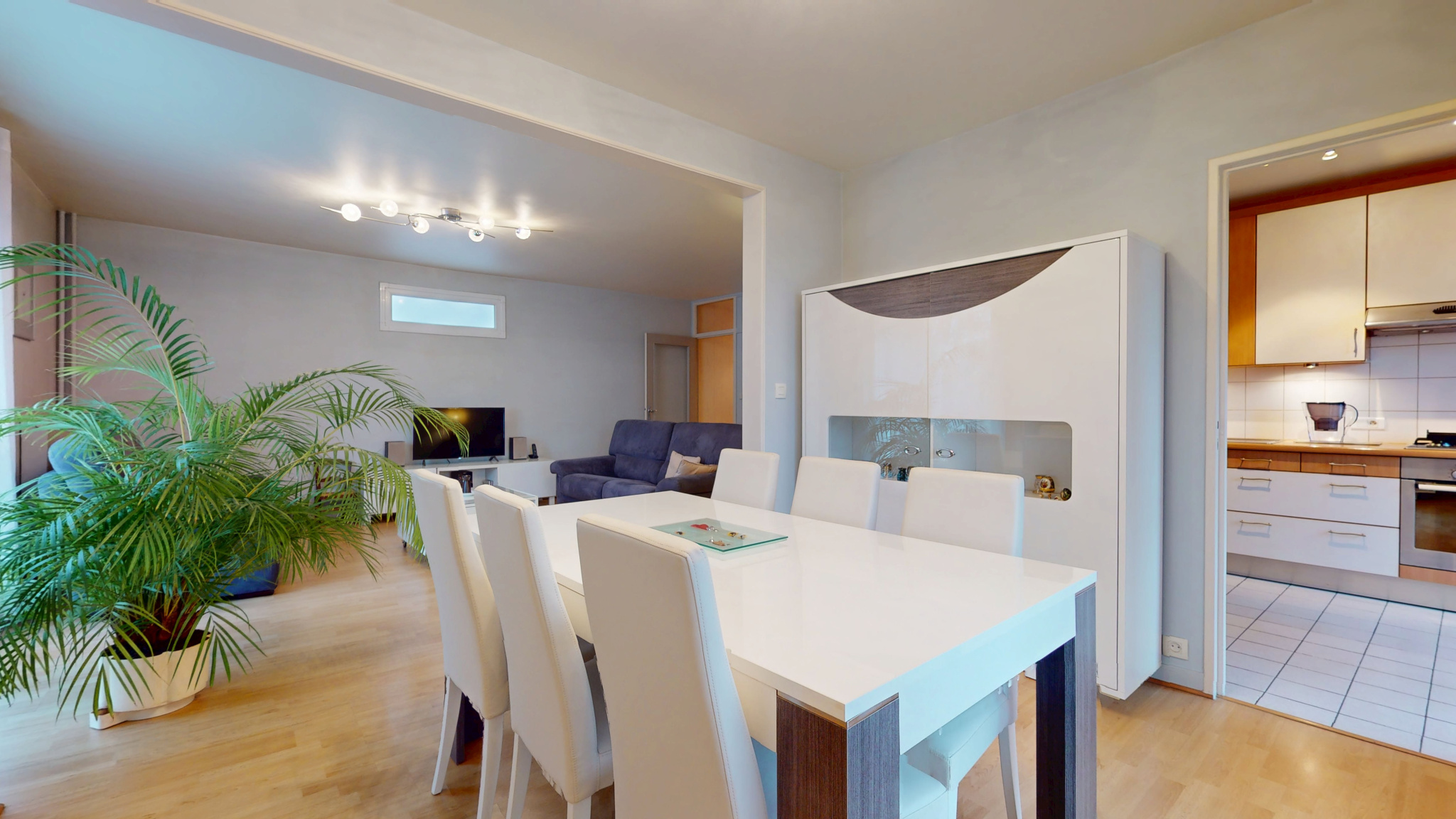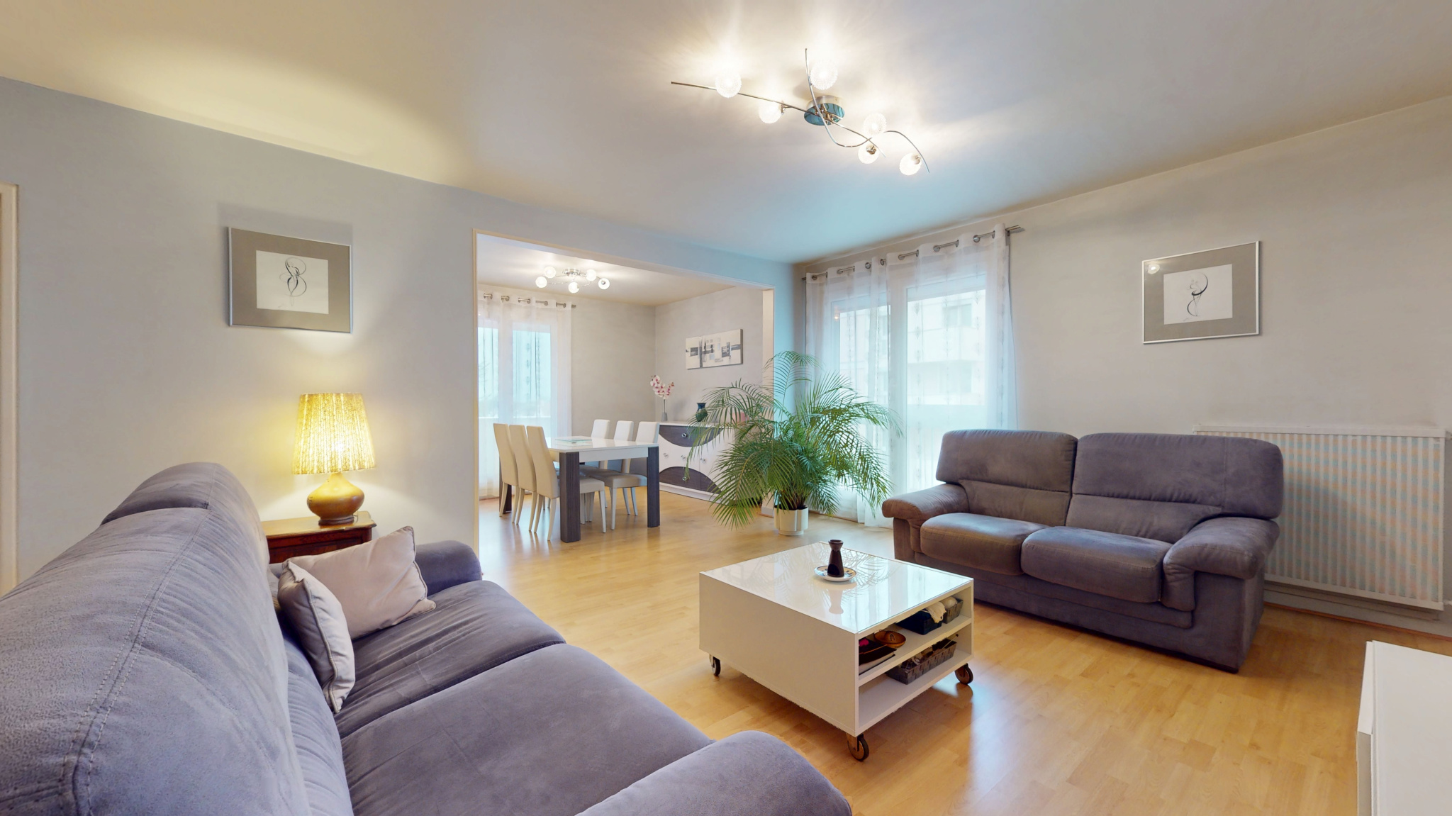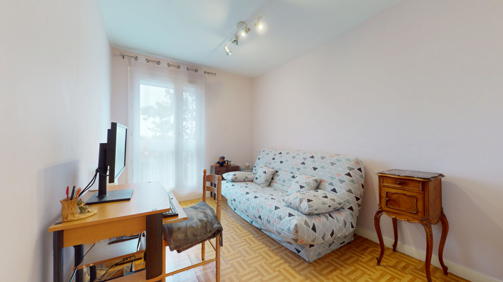 Dès l’entrée, les volumes respirent. Le double séjour, lumineux grâce à sa double exposition, devient naturellement le cœur de la maison : un espace de vie convivial, prolongé par un balcon où savourer un café au soleil face à une résidence boisée, ou un moment de calme en fin de journée.