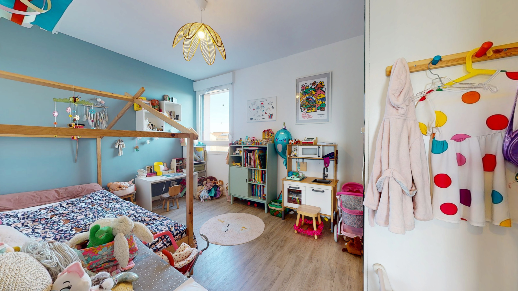 À l’étage, un élégant dégagement dessert trois chambres harmonieuses, toutes dotées de rangements intégrés, un WC indépendant et une salle de bain pensée pour le quotidien de toute la famille.
