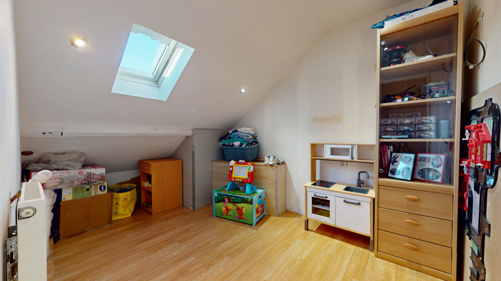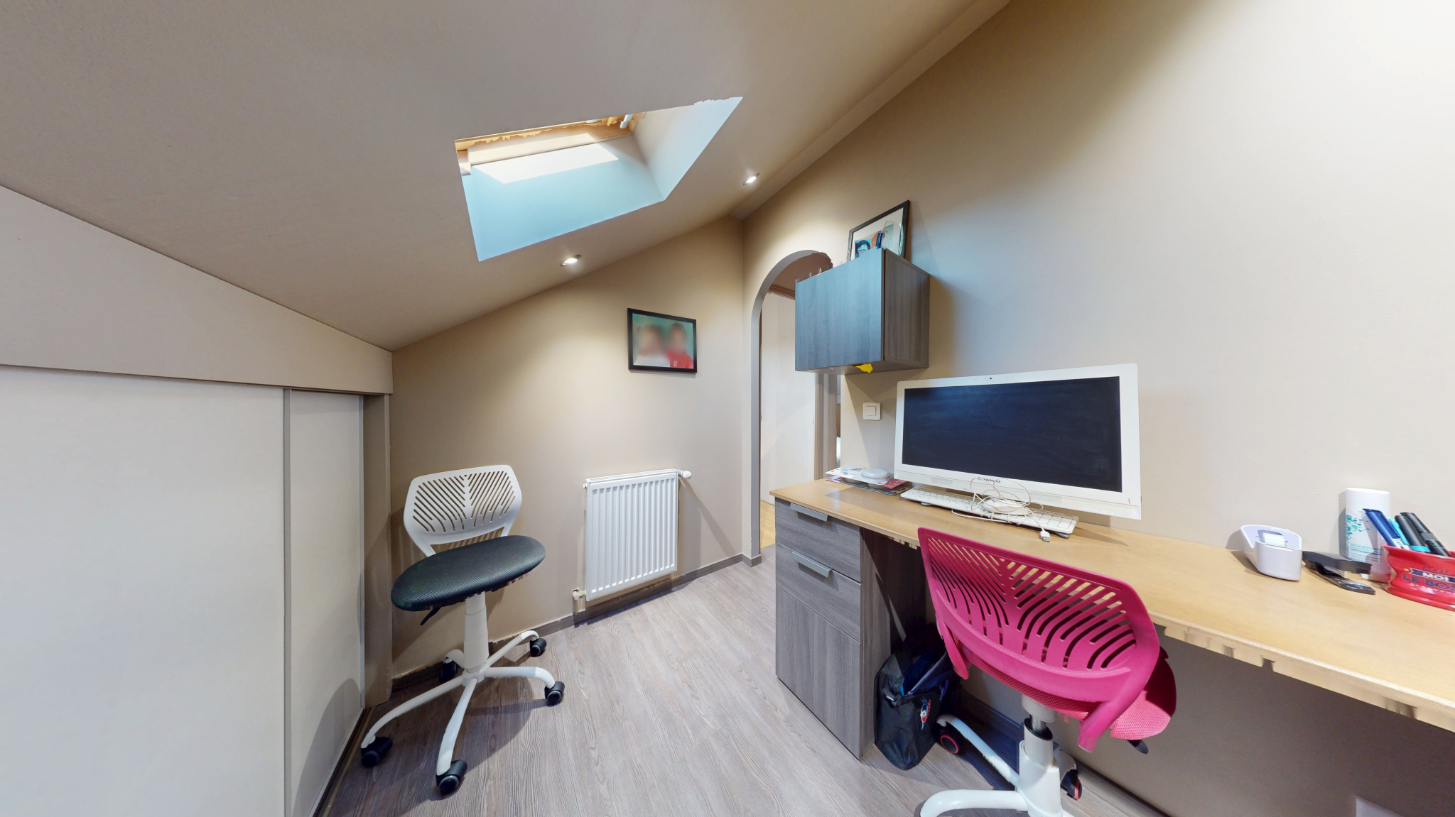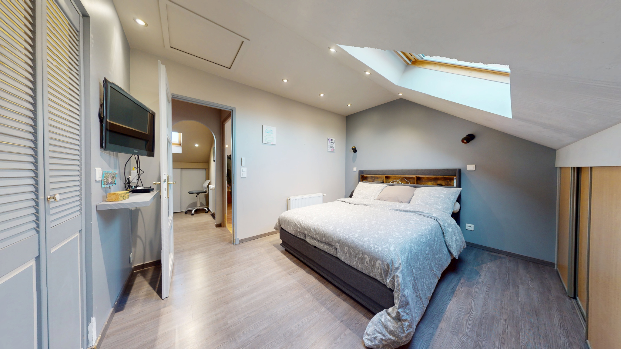 À l'étage, trois belles chambres et une salle de bains moderne avec WC offrent un confort quotidien optimal. Les combles ont été aménagés avec goût : un espace bureau idéal pour le télétravail, une quatrième chambre dotée de nombreux rangements, ainsi qu'une pièce polyvalente qui pourra être transformée en salle de bains supplémentaire, salle de jeux ou toute autre fonction selon les besoins de votre famille.