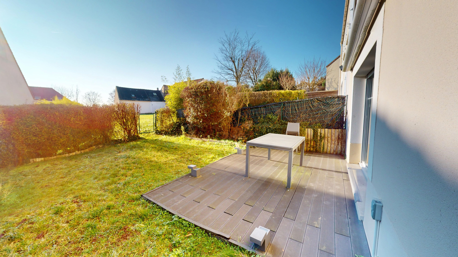 Un portillon permet un accès direct à un jardin commun, un véritable atout pour les enfants et les moments de convivialité.