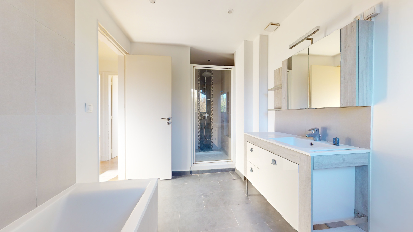 A l'étage, elle vous offre 3 chambres, une salle de bains spacieuse avec baignoire et douche ainsi qu'un WC.