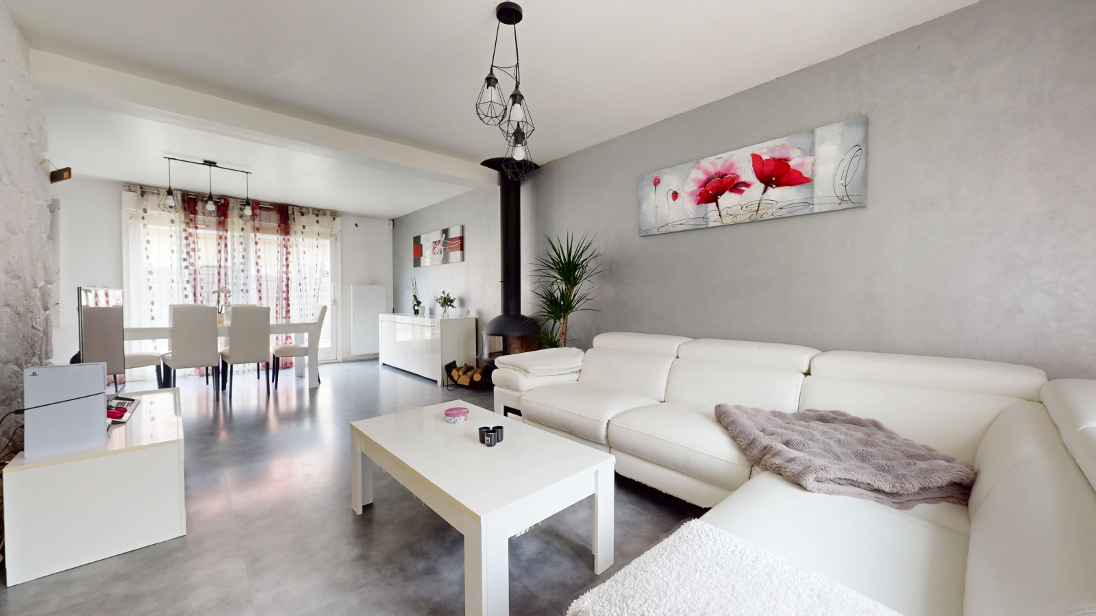 Maison individuelle avec sous-sol total et tout le confort de plain-pied, elle dispose d'une entrée avec placard, d'un séjour / salle à manger traversant avec accès direct à la terrasse et au jardin, d'une cuisine équipée, le tout réchauffé par un élégant poêle suspendu, d'une suite parentale avec sa propre salle d'eau et un WC séparé.