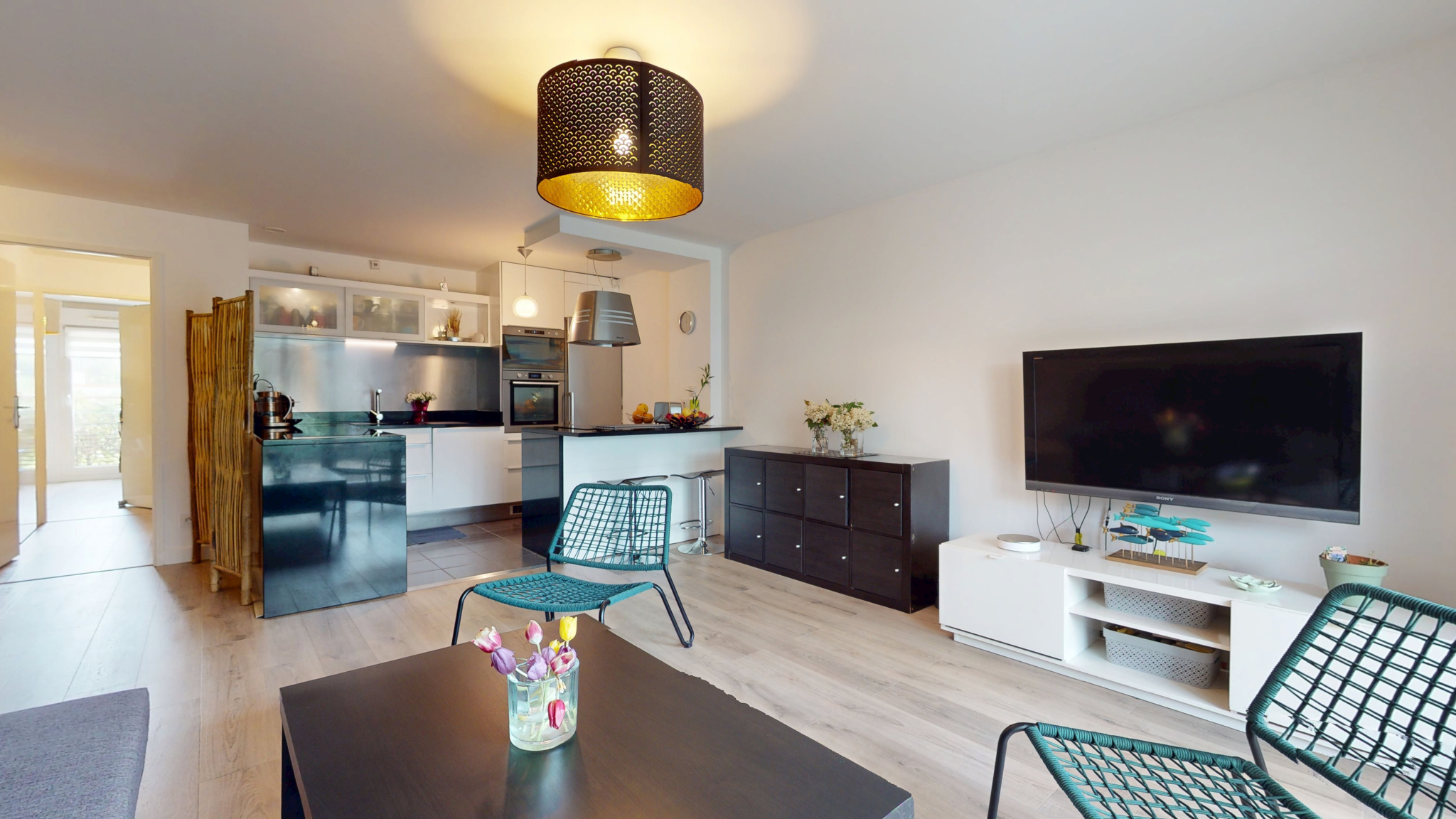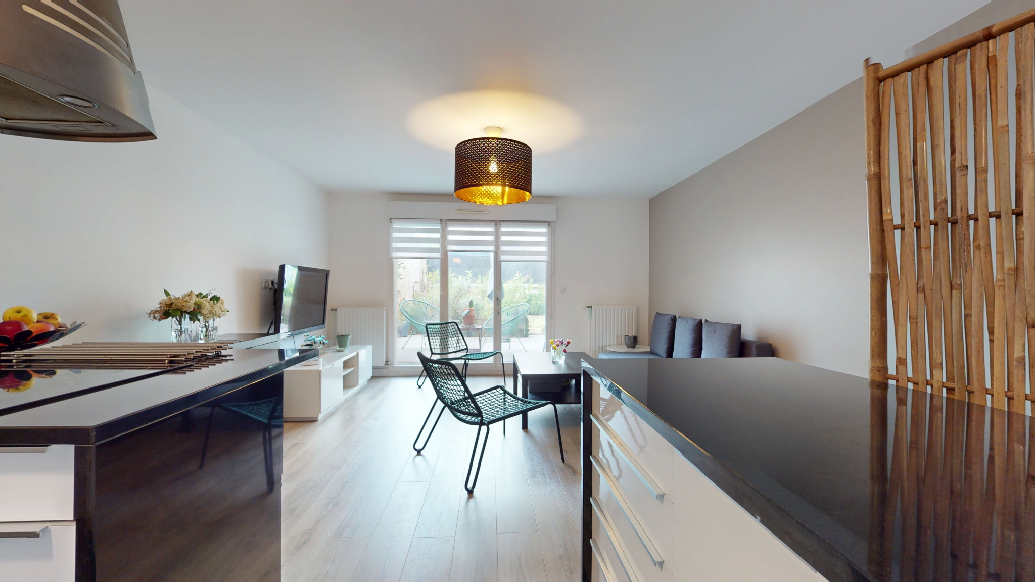 D’une belle surface, il s’organise autour d’une entrée avec rangements, suivie d’un agréable séjour qui s’ouvre directement sur une terrasse. La cuisine ouverte, de qualité supérieure, se distingue par son plan de travail en granit intemporel.
