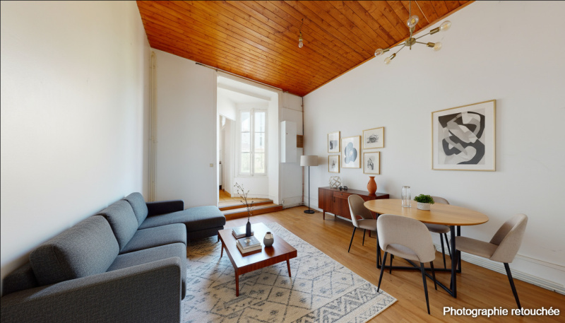 Avec sa grande hauteur sous plafond, il se compose d'une entrée, pièce principale lumineuse avec lit en mezzanine et coin bureau, et au - 1, vous trouverez une salle d'eau,un wc et une cuisine.