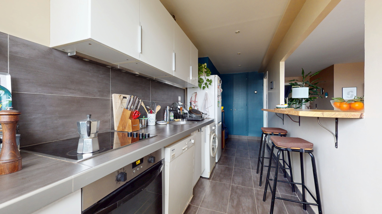 Dans une petite copropriété sécurisée, il se compose d'un séjour donnant sur une terrasse avec vue dégagée, une cuisine aménagée et équipée, un dégagement avec placard, une chambre sur cour arrière, une salle d'eau et WC indépendant.