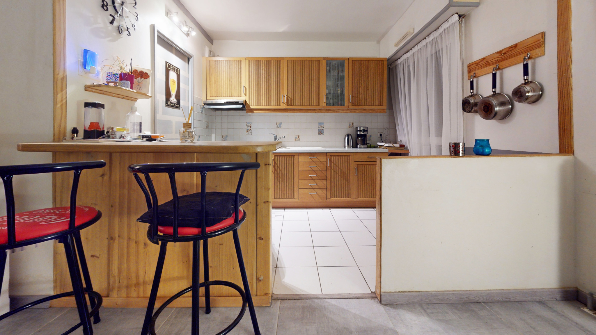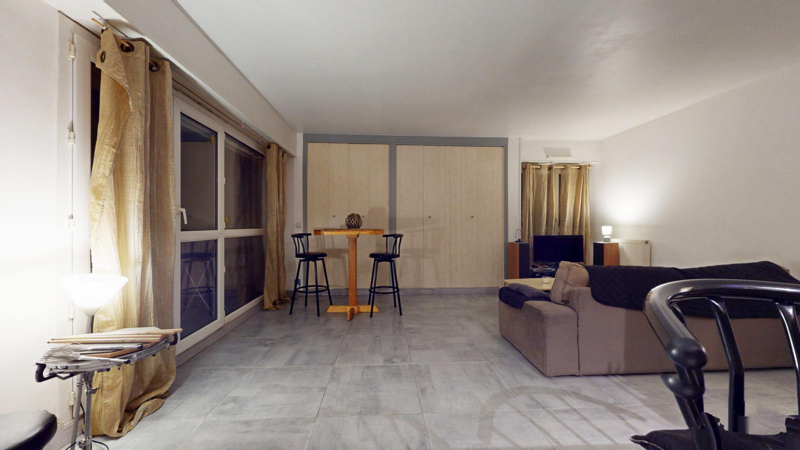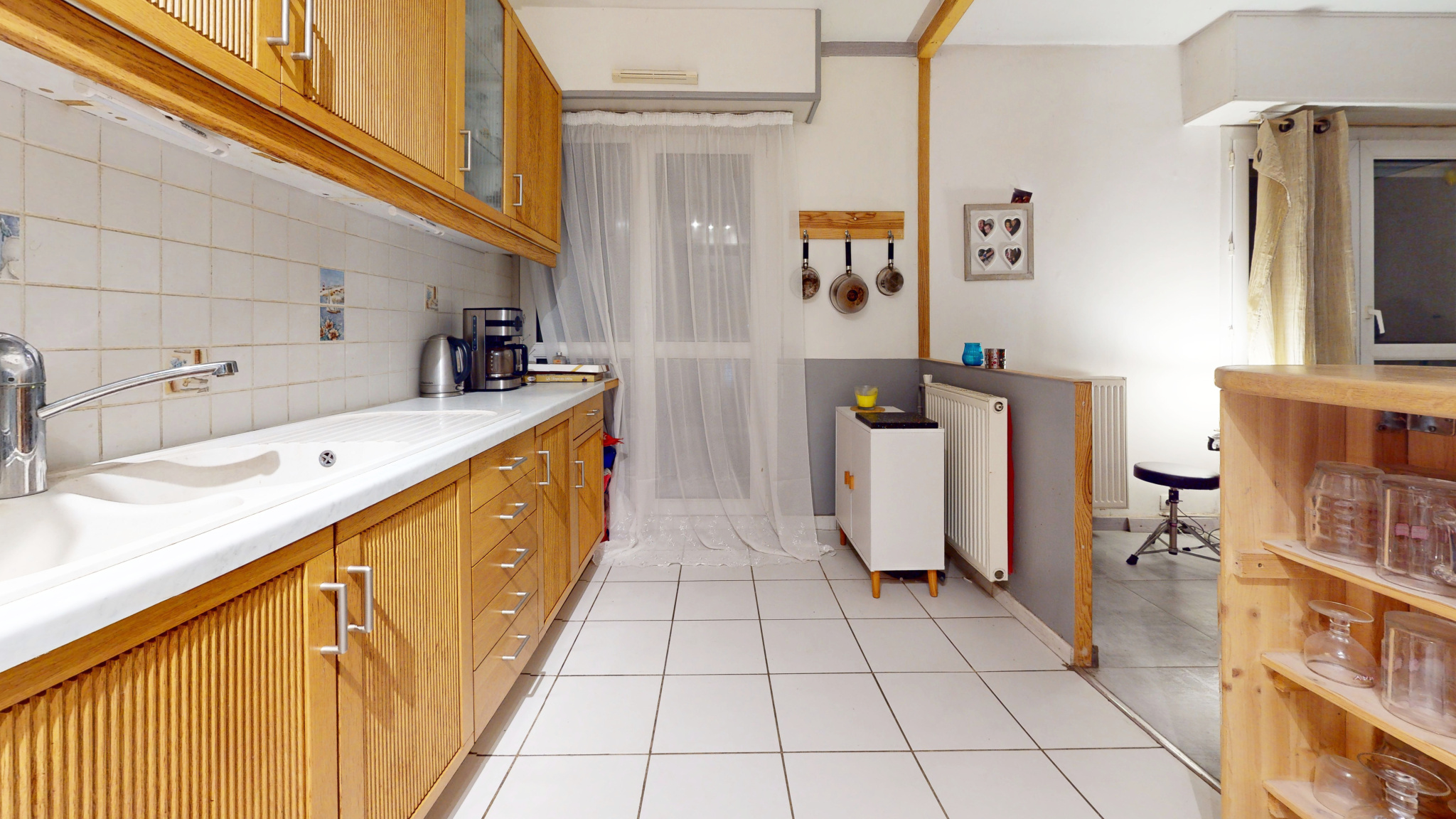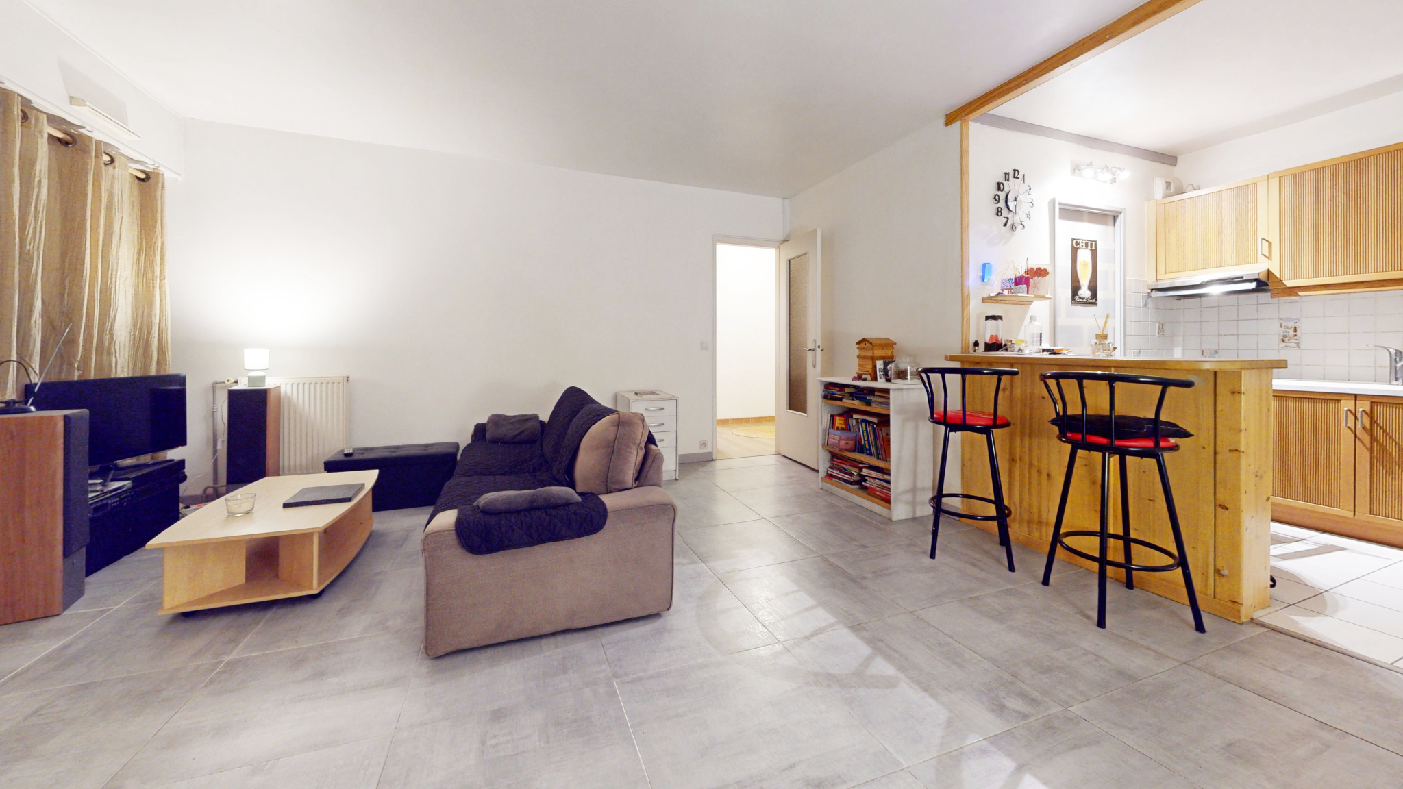 Il se compose d’une entrée avec placard, d’un séjour traversant offrant une double exposition, avec accès direct à un balcon bénéficiant d’une vue dégagée sur le centre équestre voisin. La cuisine, ouverte et entièrement équipée, dispose également d’un accès extérieur.