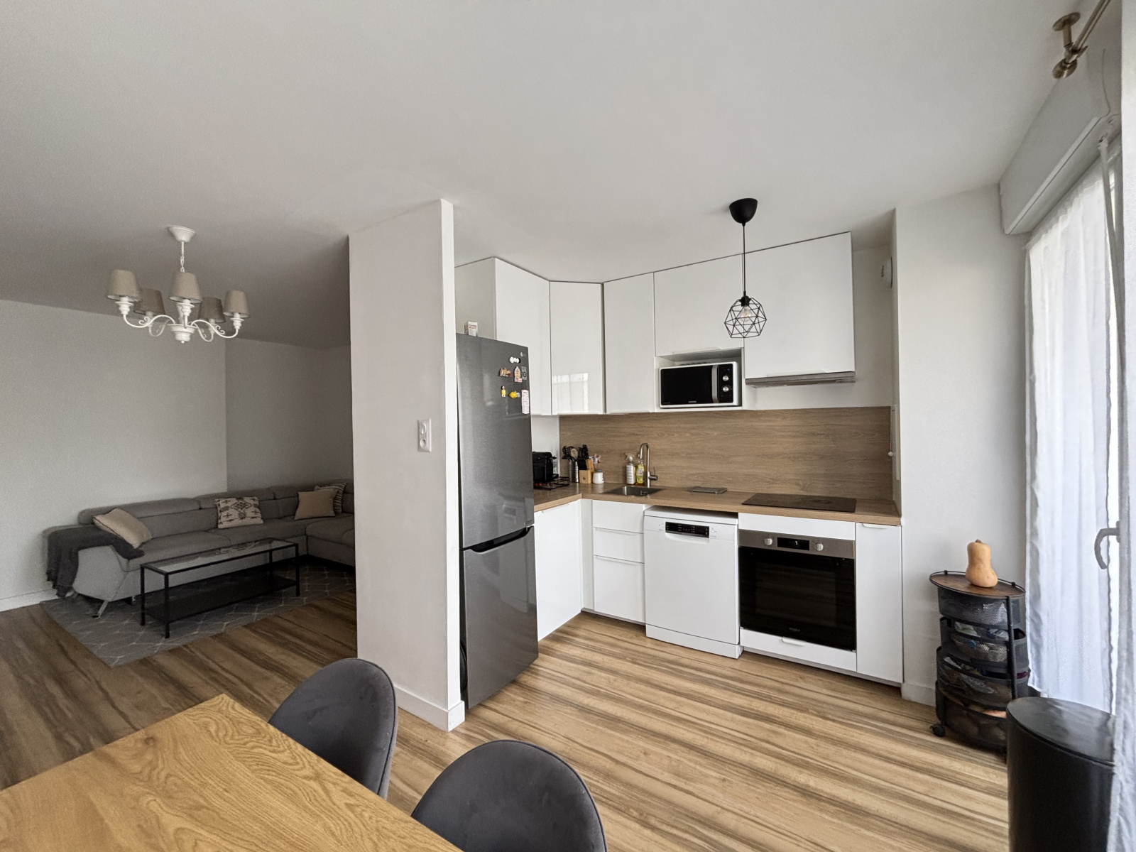 Dès l’entrée, vous serez séduits par les beaux volumes et la luminosité. Le séjour, spacieux et baigné de lumière, s’ouvre sur une cuisine moderne entièrement aménagée et équipée, le tout prolongé par une agréable terrasse au calme, à l’arrière de la résidence.