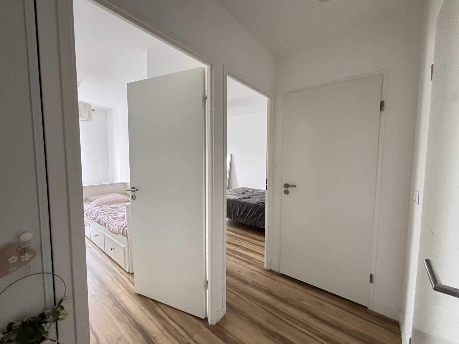 L’espace nuit se compose de deux chambres confortables, d’une salle d’eau contemporaine et de WC séparés.