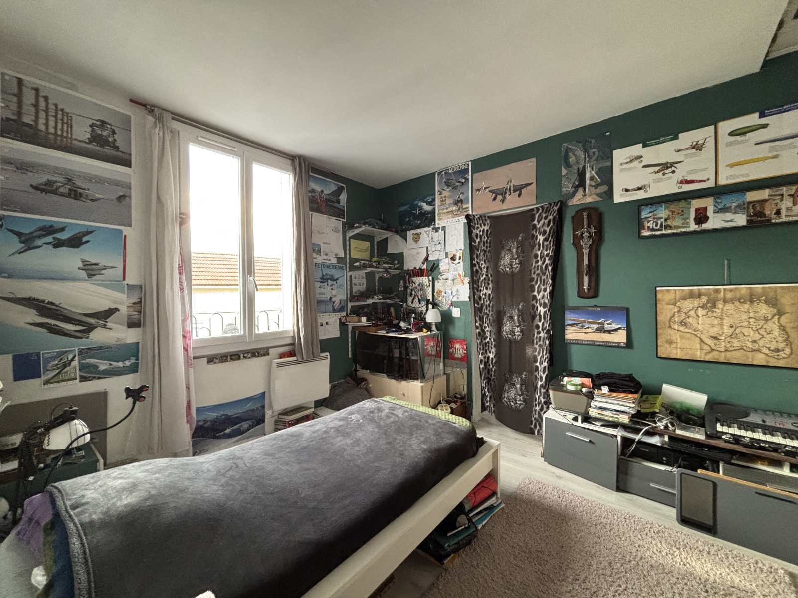À l’étage, un palier dessert deux belles chambres et une salle d’eau avec WC.