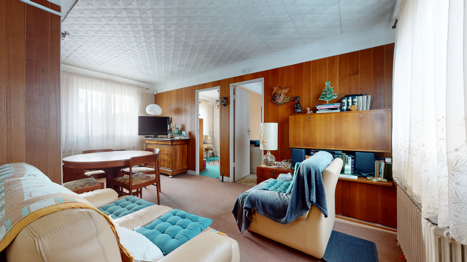 Elle se compose d’une entrée accueillante ouvrant sur un séjour lumineux exposé sud-ouest, d’une cuisine ouverte, ainsi que de deux chambres, une salle d'eau et un WC séparé.