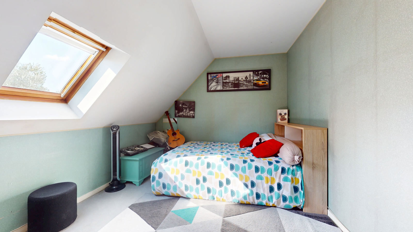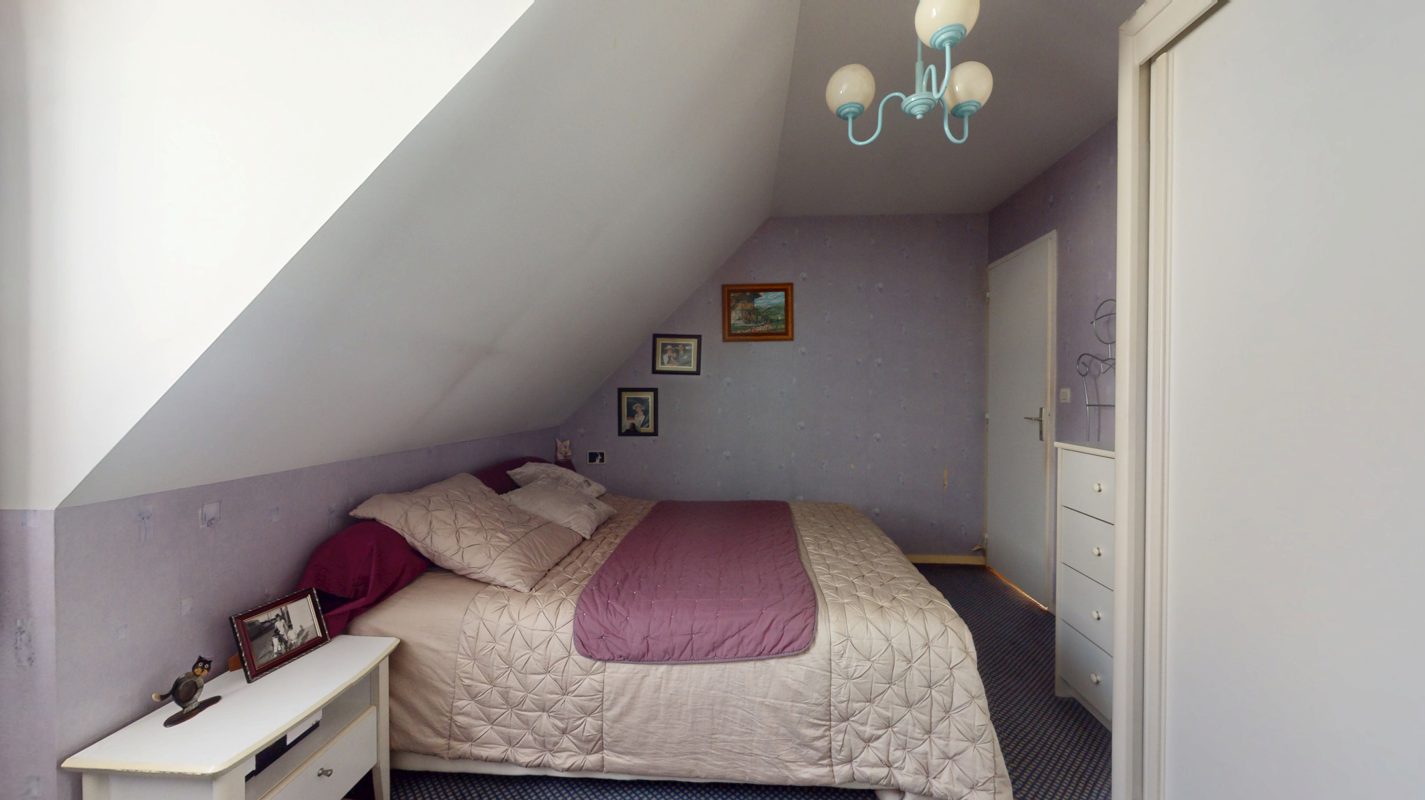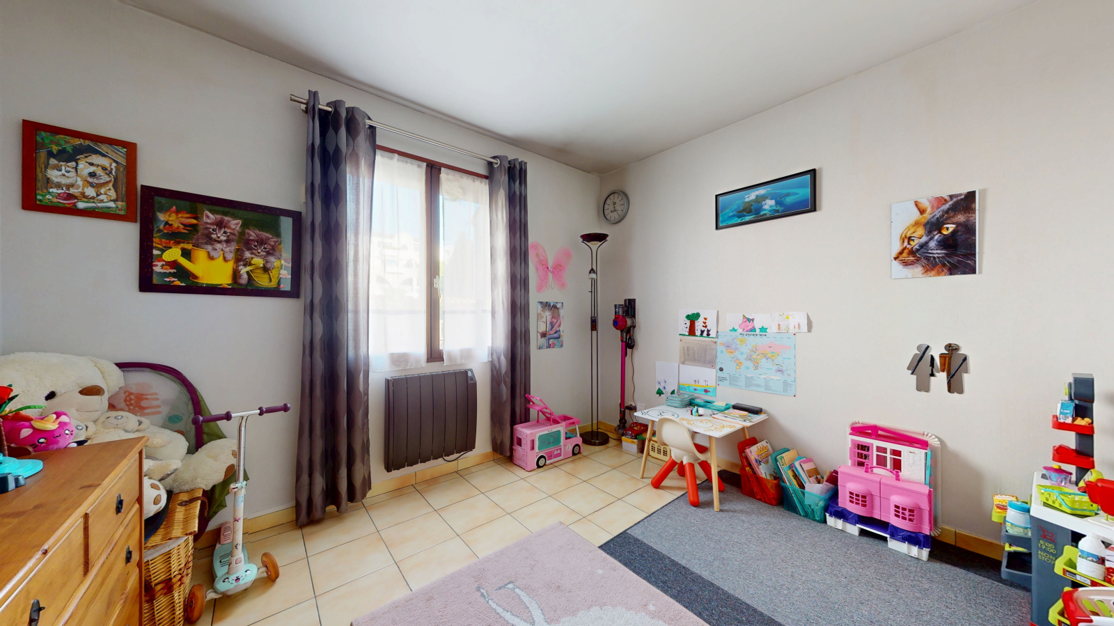 À l’étage, un palier distribue trois grandes chambres avec placards intégrés, ainsi qu’une spacieuse salle d’eau de 9 m² avec WC, parfaitement adaptée au confort d’une famille.