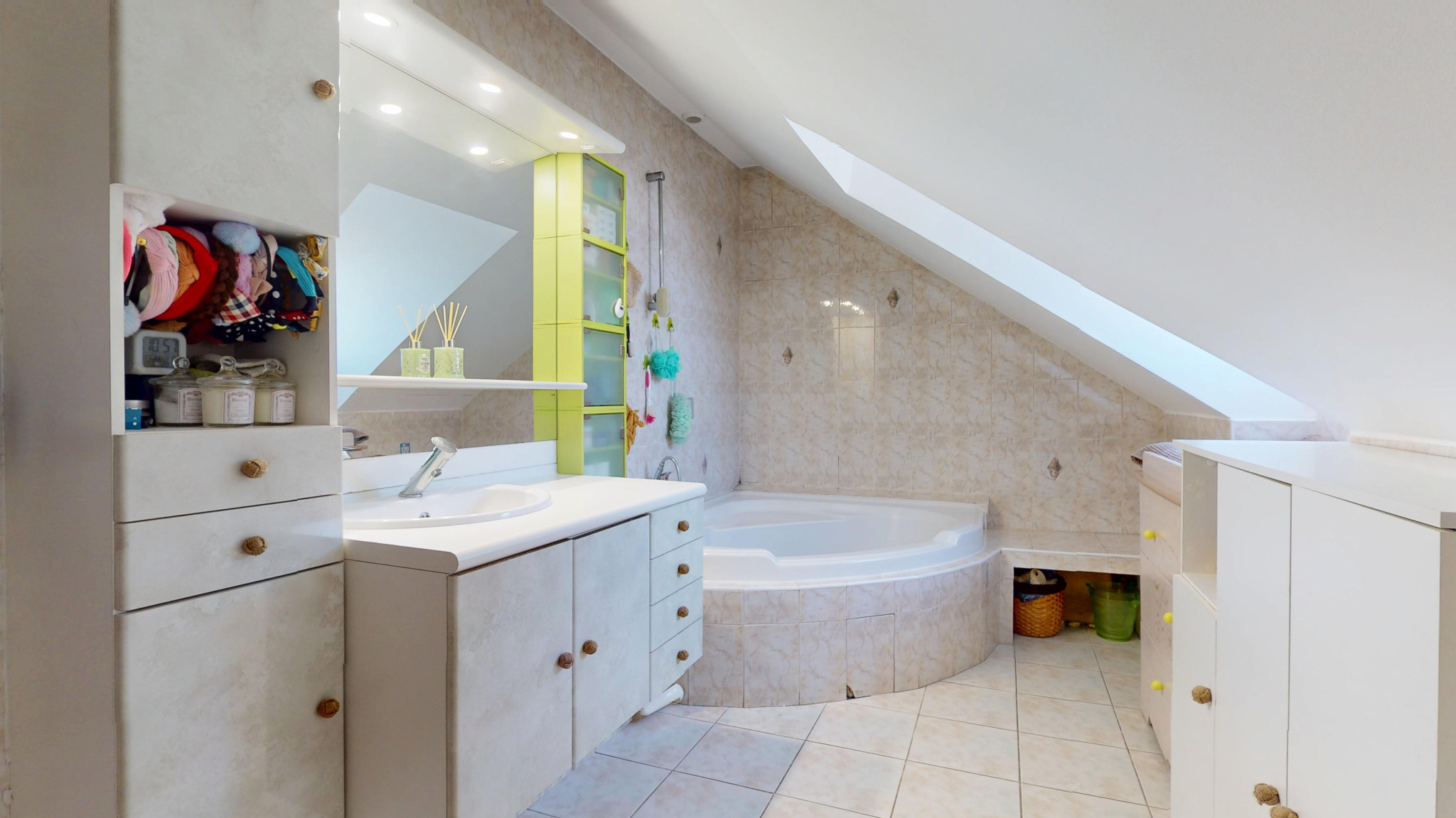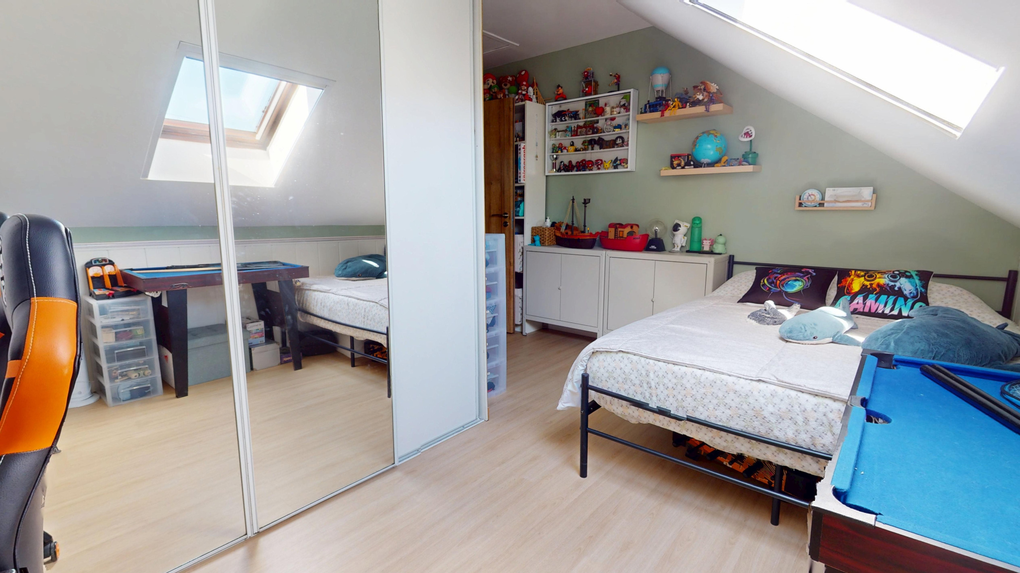 À l’étage, un palier dessert trois belles chambres ainsi qu’une salle de bains avec WC, parfaite pour accueillir toute la famille.