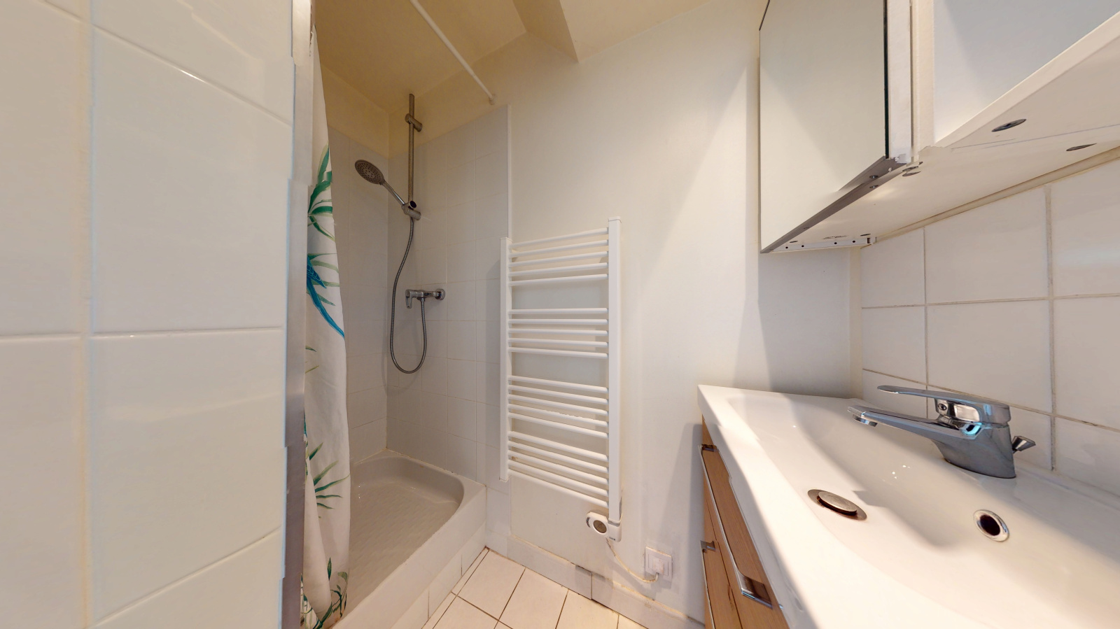 L’appartement se compose d’une agréable pièce de vie avec coin cuisine aménagé et équipé, d’un espace nuit bien séparé par une verrière et une cloison, d’une salle d’eau fonctionnelle et de WC indépendants.