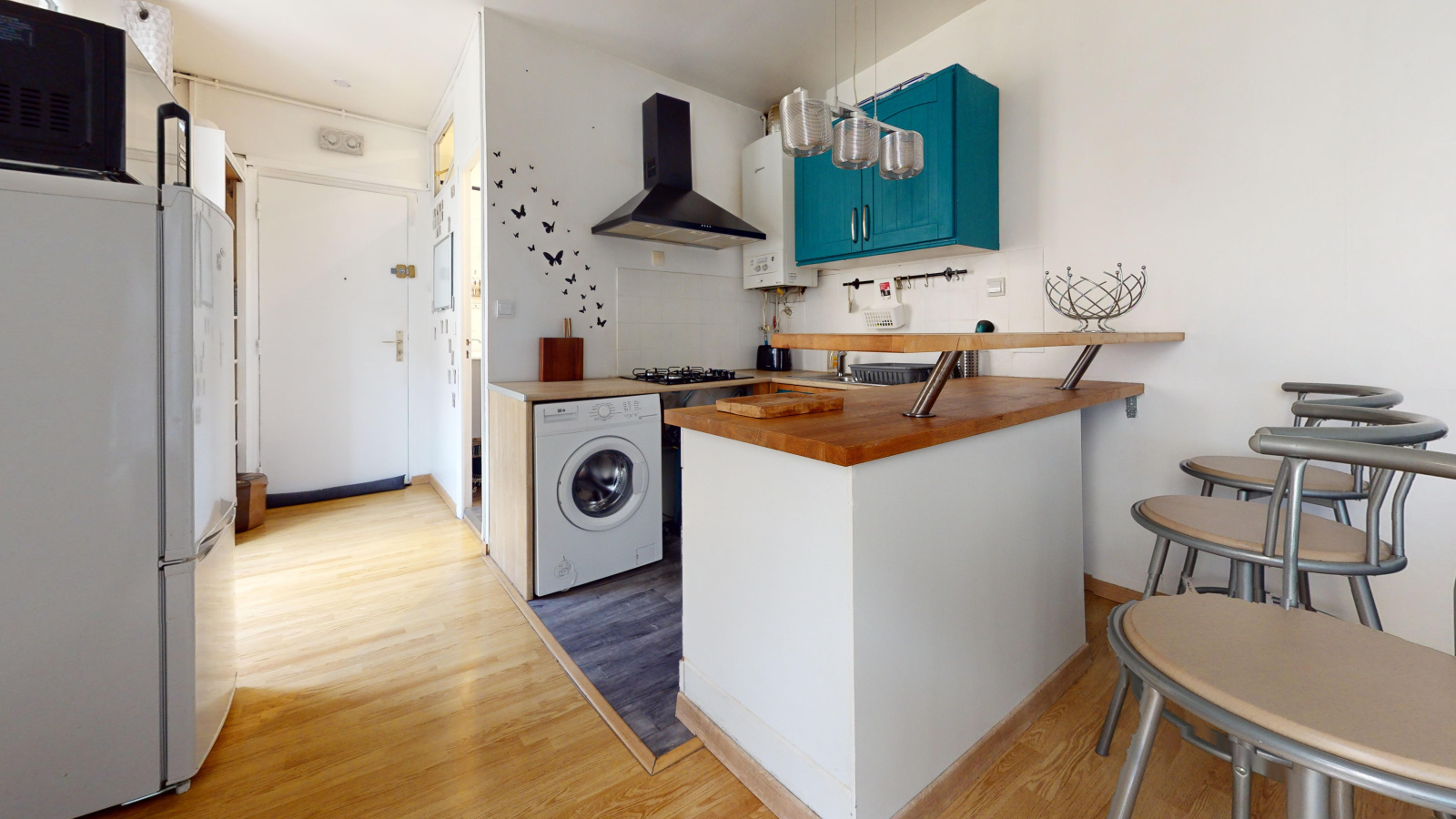 Il se compose d’une entrée avec rangement, d’une cuisine ouverte sur le séjour, ainsi que d'une salle d’eau avec WC. L’espace de vie mène à une chambre disposant d’un rangement intégré, offrant un agencement pratique et fonctionnel.
