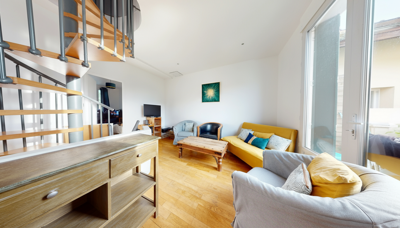Environnement résidentiel calme, à proximité des commerces de quartier, des écoles et des services. Transports : à 15 minutes à pied de la gare desservie par le RER A et les lignes J et L, facilitant les déplacements vers Paris et la région. Accès routiers et parkings à proximité, ainsi que des espaces verts pour les loisirs et les promenades.