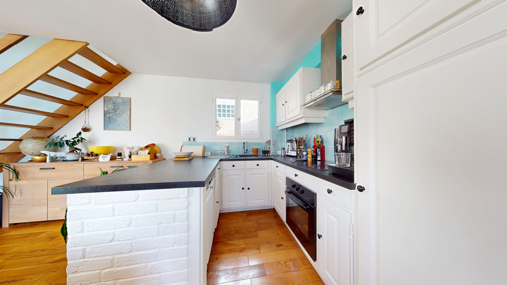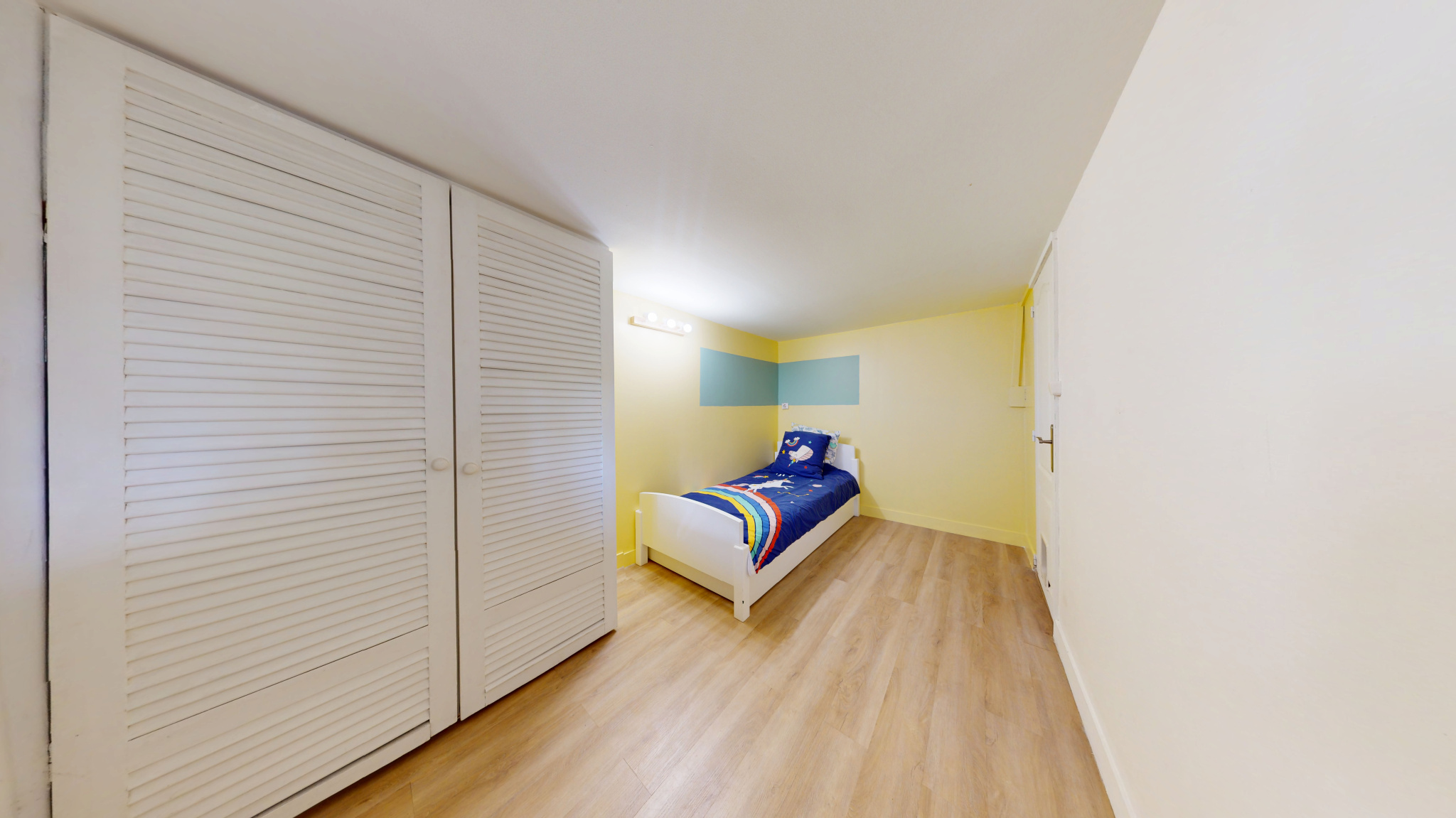 Le sous-sol semi-enterré a été aménagé en deux pièces claires, chacune pourvue de fenêtres, offrant des possibilités d’usage en chambre, buanderie ou bureau, ainsi qu’un petit réduit dédié au lave-linge.