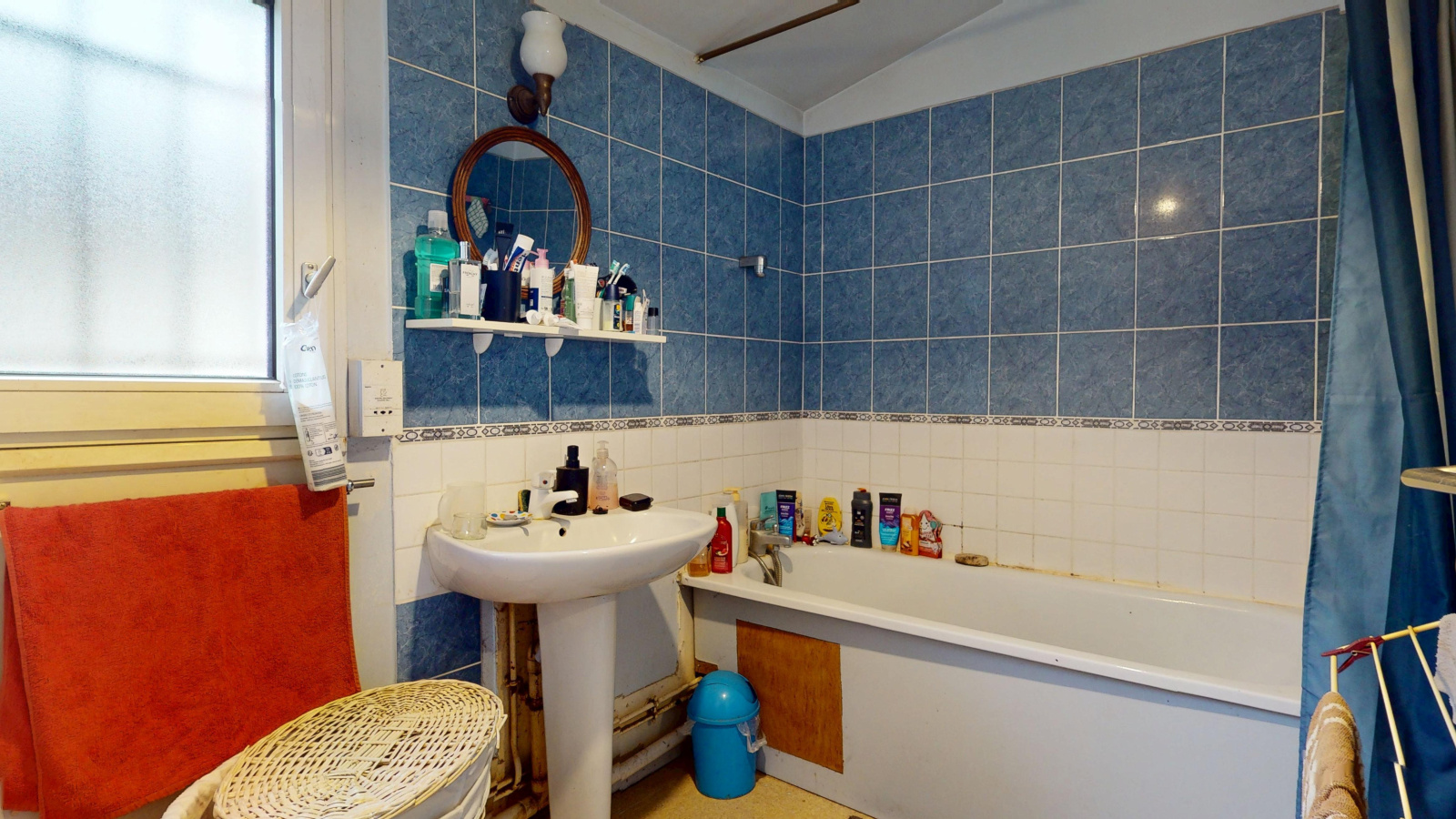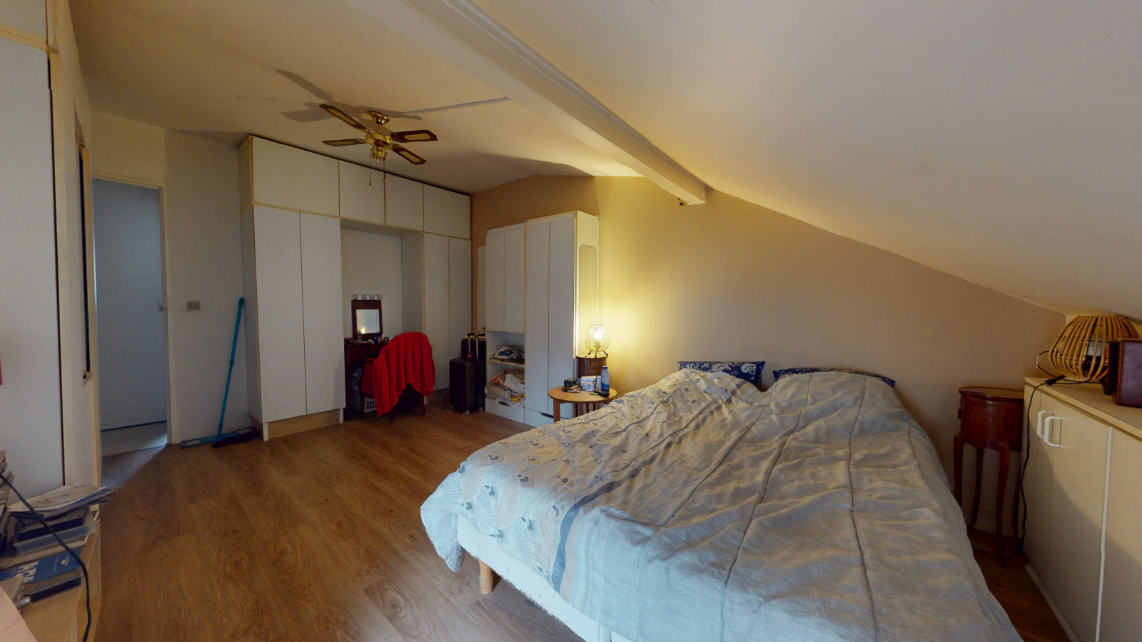 À l’étage, un palier dessert trois chambres, offrant un espace pour toute la famille, ainsi qu’une salle de bains avec fenêtre apportant lumière naturelle et confort, et un WC séparé.