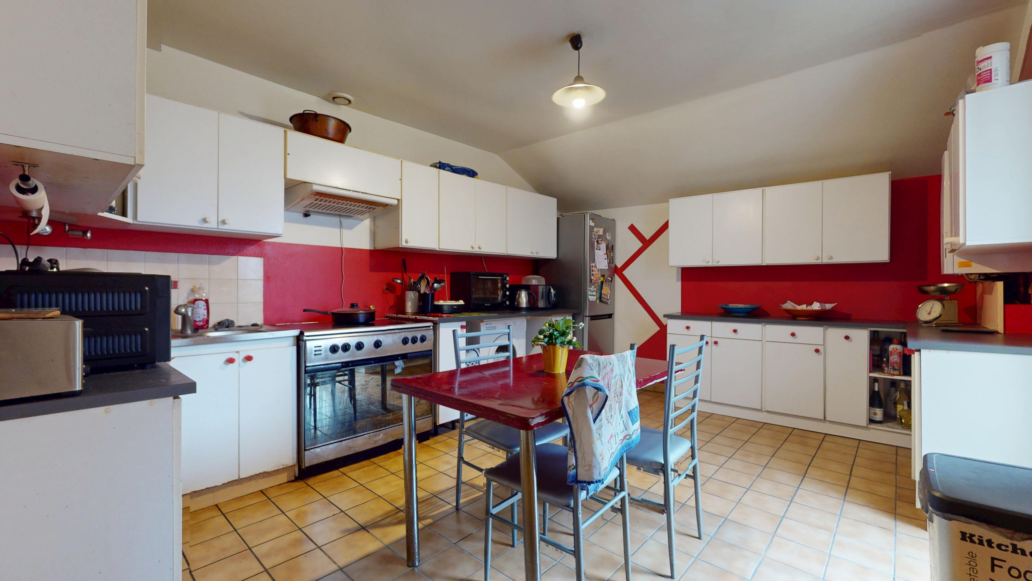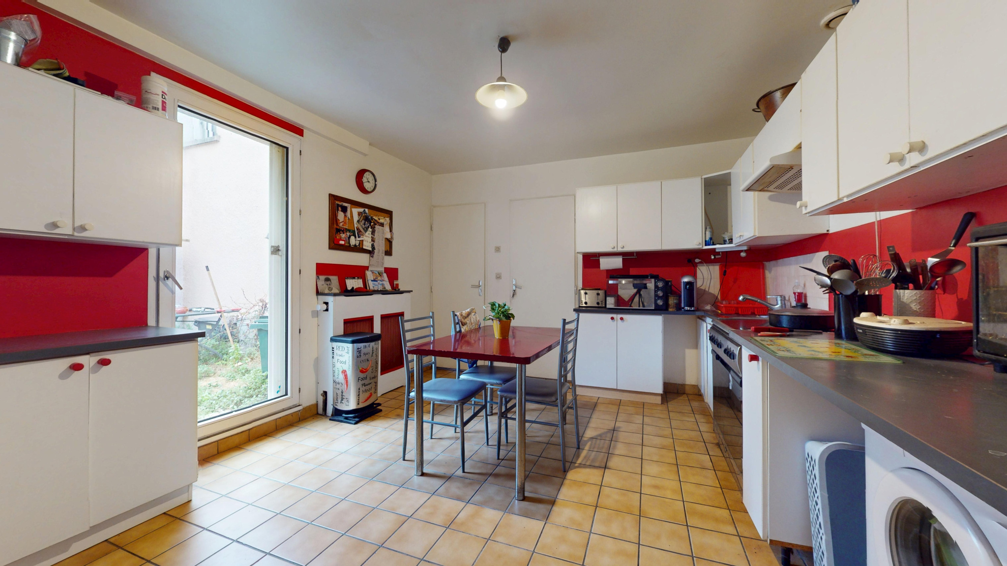 La grande cuisine dinatoire, spacieuse et conviviale, bénéficie elle aussi d’un accès direct au jardin, parfaite pour les repas en famille ou entre amis.